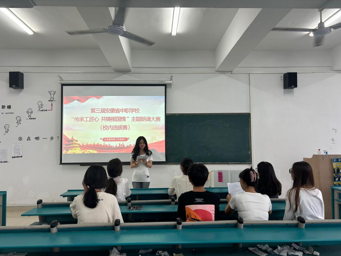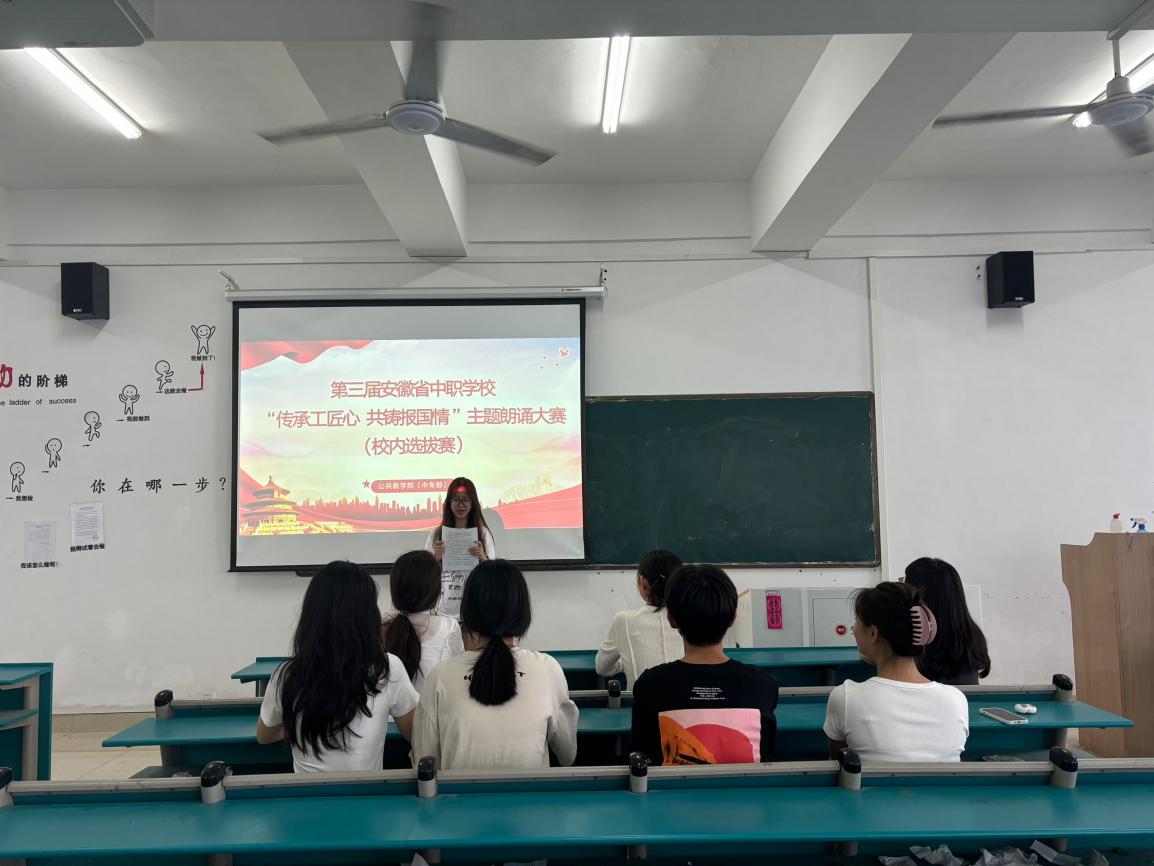 为深入贯彻落实“技能成才 强国有我”的核心导向,以大国工匠、能工巧匠、劳动模范为榜样,激励学子厚植家国情怀,成长为德技双馨的技术技能人才,5月26日,公共教学部(中专部)于F526教室举办了第三届安徽省中职学校“传承工匠心 共铸报国情”主题朗诵大赛的校内选拔赛。团委工作人员、中专部全体教师、辅导员参加了评审。