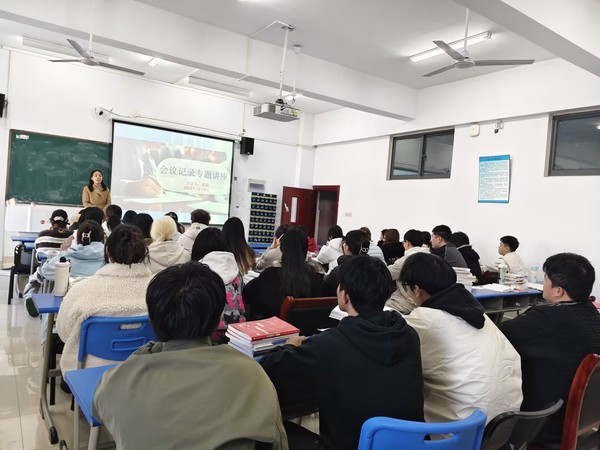 为了切实提高学生撰写会议记录的水平,公共教学部副教授张莉老师于2025年12月9日在D303开展会议记录专题讲座。2024级社区专业学生到场聆听。
