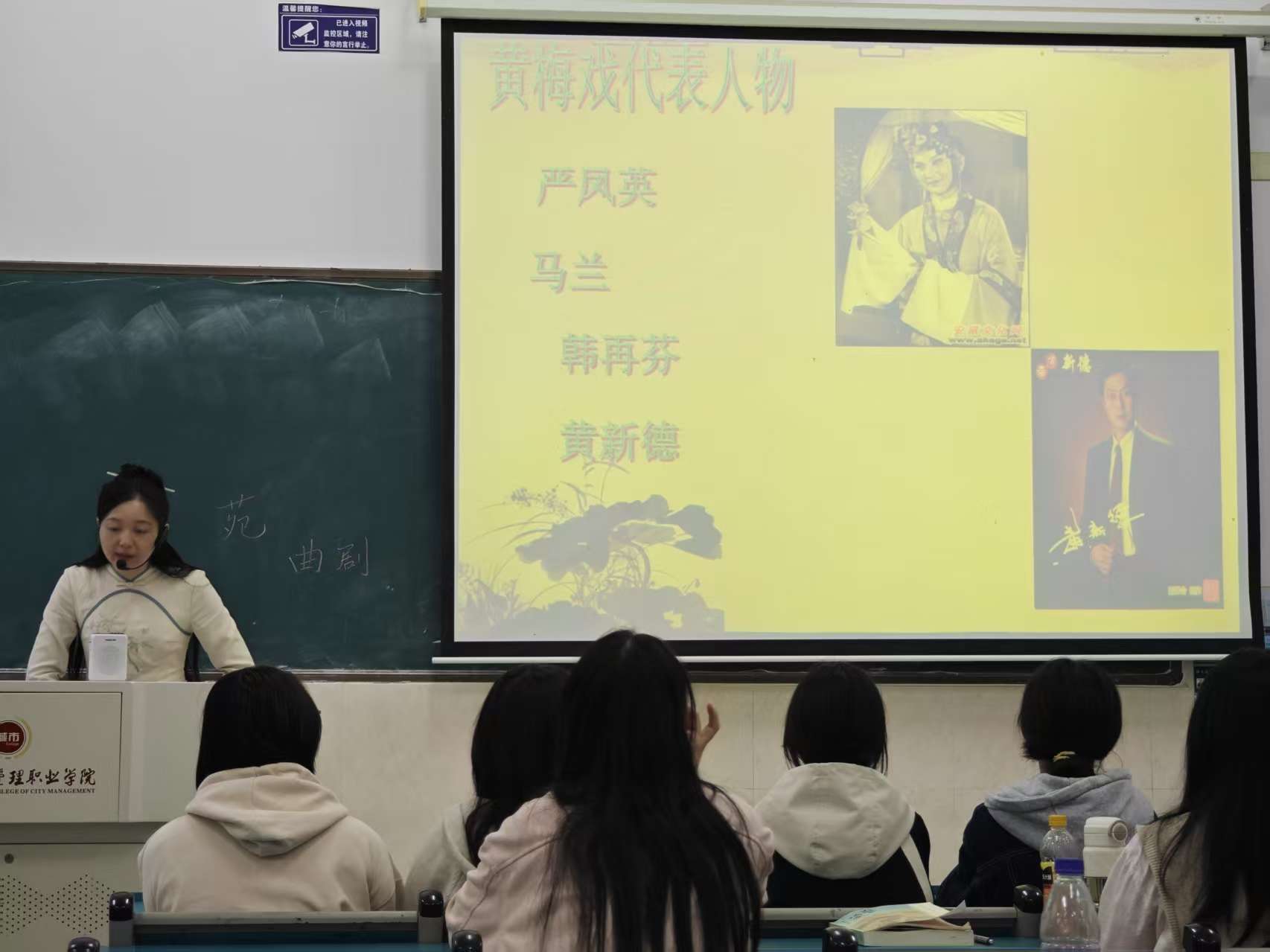 课堂伊始,杨老师通过图文结合的方式,系统讲解中国戏曲“手眼身法步”与“唱念做打”等常识,让社员们对戏曲有了整体认知。随后,重点聚焦黄梅戏,从其起源讲起,梳理其发展为全国五大剧种之一的历程,还特别介绍了严凤英、王少舫等代表人物的艺术风格。在解读《女驸马》故事背景时,老师用通俗的语言还原剧情转折,引发社员阵阵惊叹。社员们专注记录笔记,不时举手提问,对戏曲文化的求知欲被充分点燃,为后续的实践学习筑牢了理论根基。