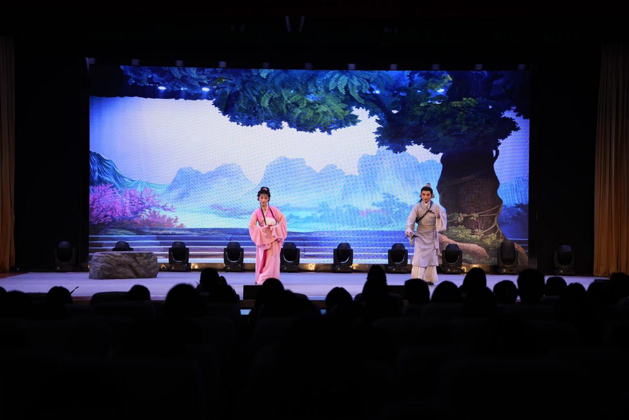 熟悉的旋律响起,不少师生情不自禁跟着轻声哼唱,沉浸在黄梅戏独有的韵律之美中。舞台上,演员们以细腻的身段、灵动的眼神配合婉转的曲调,将角色情感诠释得淋漓尽致,让现场观众仿佛穿越时空,置身于古典叙事的唯美意境之中,沉浸式感受传统戏曲的独特魅力。