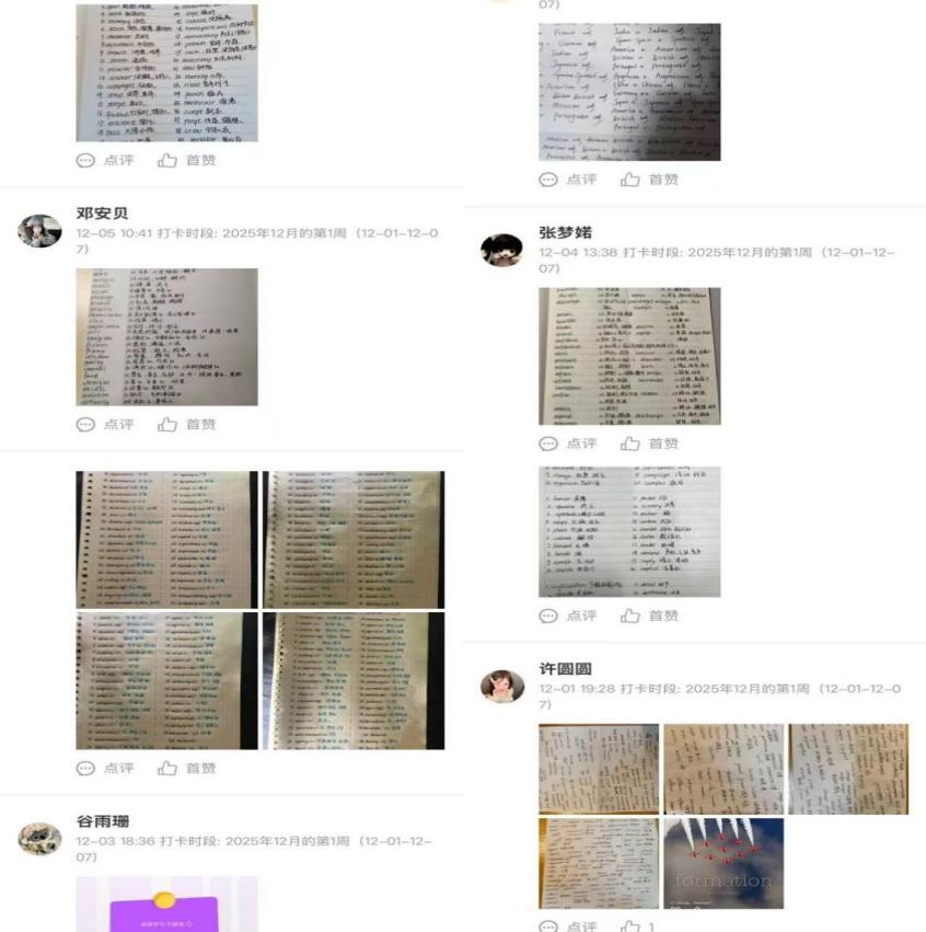自启动以来,累计参与人数已超过400人,周平均打卡率稳定在90%以上。活动以轻量化、易坚持的方式,将词汇学习融入学生日常,有效激发了学习自主性,形成了良好的英语学习氛围。