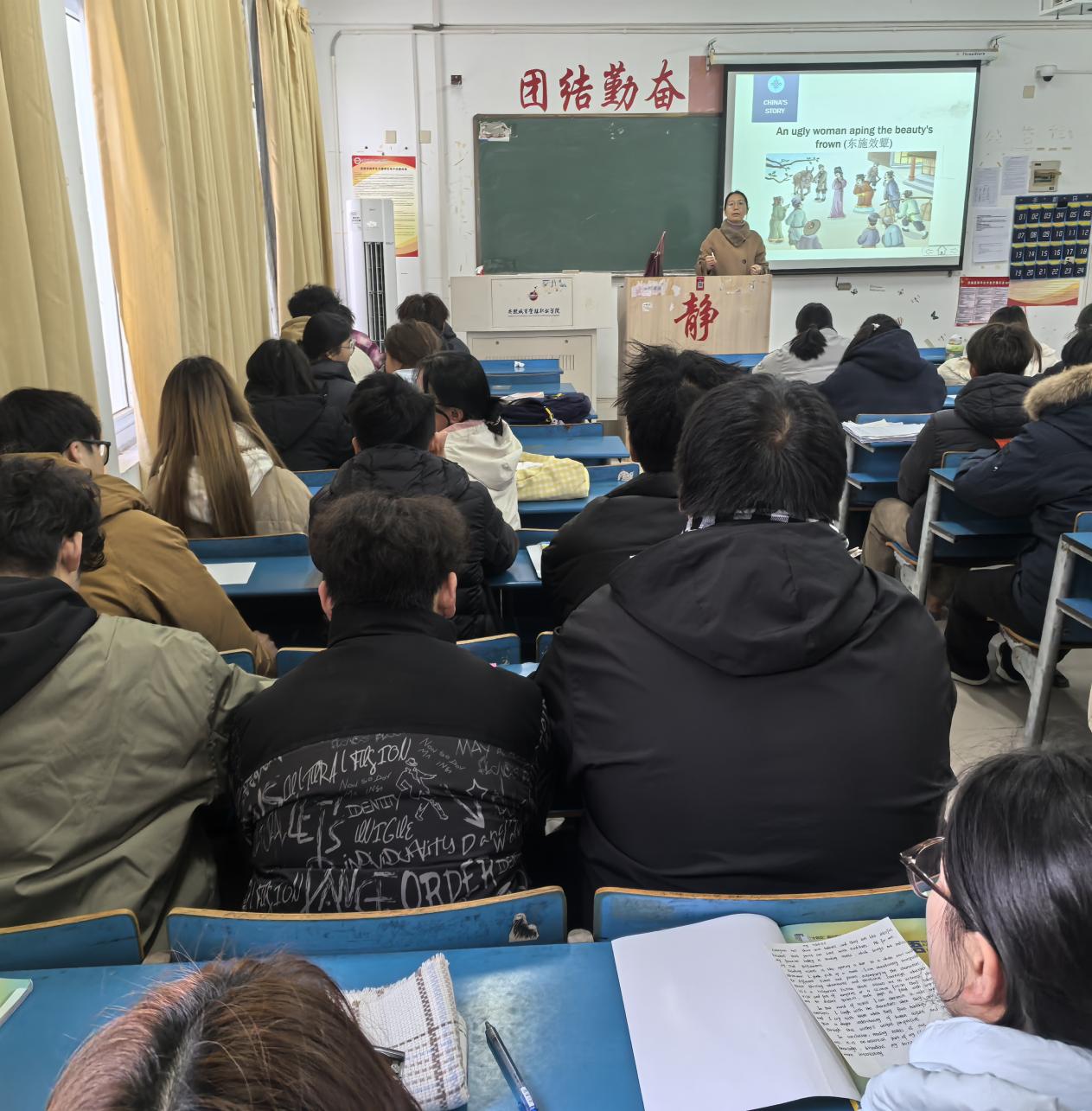 2025年12月16日,公共教学部副教授王显辉老师在A313教室,为2024级烹饪工艺与营养1班同学们带来了一场题为《沉潜飞动——庄子《逍...